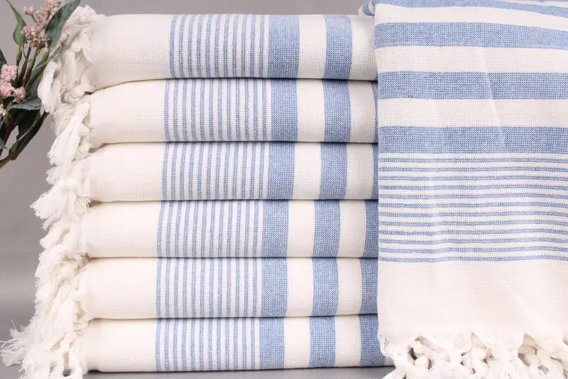 Characterized by their superior absorbency, these towels are woven from organic Turkish cotton, ensuring a high-quality fabric. Resulting in a soft and durable texture, the towels measure 40x67 inches or 100x170 centimeters, with a weight of 420 grams. Tolerances of ±2 inches or 5 centimeters apply due to hand-weaving.