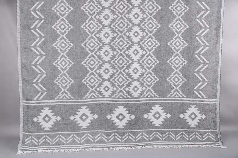 Turkish towels are woven from organic Turkish cotton on looms, ensuring high-quality craftsmanship and natural material. Resulting in a weight of 340 grams per towel, these dimensions span 73x40 inches or 185x100 centimeters. Weaving tolerances allow for a variance of ± 2" or 5cm, ensuring consistent product quality.