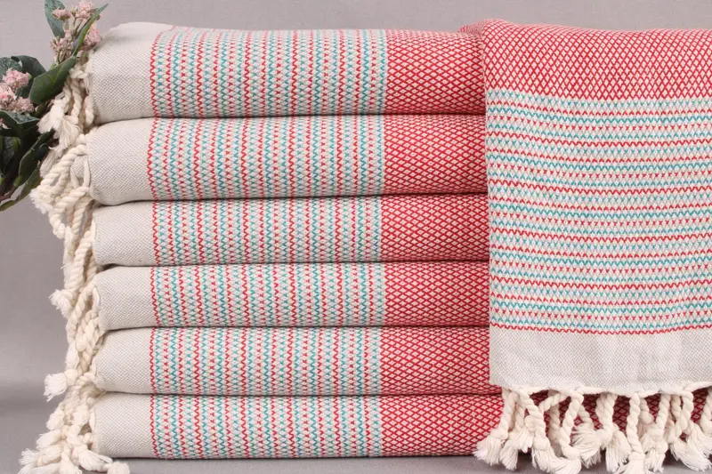Hand-woven Turkish cotton towels are characterized by superior absorbency and durability, ensuring long-lasting use. Towels measure 20x36 inches or 50x90 centimeters, with a weight of 120 grams, resulting in a slight variation of ± 2 inches or 5 centimeters due to manual weaving. Customization options include embroidery or printed letters, names, or logos, delivered within 2-5 business days via FedEx or DHL Express.