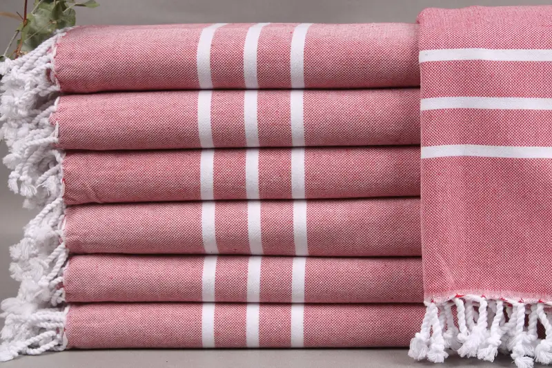 The product comprises an organic cotton towel, characterized by its Turkish heritage and meticulous hand-weaving technique. Ensuring exceptional absorbency and softness, these towels are woven from organic Turkish cotton, which contributes to their eco-friendly nature. Resulting in towels that measure 40x69 inches or 100x175 centimeters with a slight tolerance of ± 2" or 5cm, these items present a weight of 395 grams. Each towel is handcrafted and can be personalized with embroidery or monograms as per the customer's specifications.