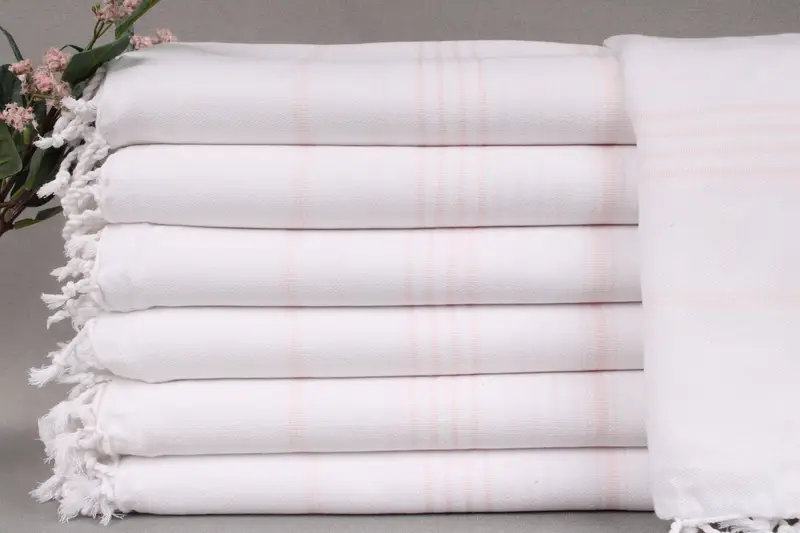 The towels are woven from organic Turkish cotton, ensuring exceptional absorbency and durability. Resulting in a weight of 300 grams, these towels measure 40x71 inches or 100x180 centimeters with a tolerance of ± 2 inches (5 centimeters). Each piece is handcrafted on looms, providing a high-quality finish.