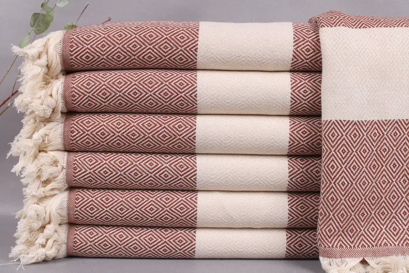 Dimensions of the towels include a precise 40x71 inches or 100x180 cm with a permissible deviation of ±2 inches (5 cm) due to the manual weaving process. Each towel w...