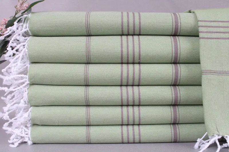 Turkish towels are composed of organic Turkish cotton, ensuring superior absorbency and softness. Characterized by a weight of 265 grams and dimensions of 71x40 inches (180x100 centimeters), these towels exhibit a tolerance of ±2 inches (5 cm) due to hand-weaving. As a result, each piece maintains high-quality standards while accommodating slight variations.