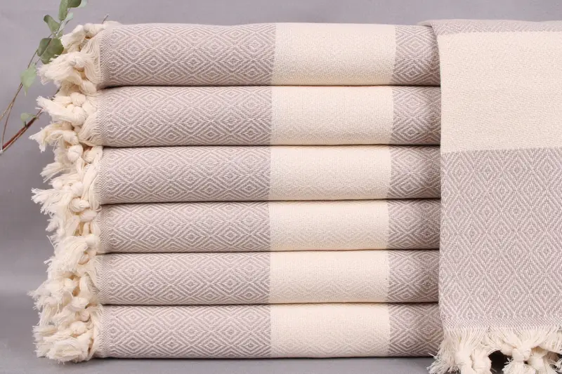 These towels are composed of organic Turkish cotton, ensuring high absorbency and durability. Characterized by dimensions of 40x71 inches or 100x180 centimeters and a weight of 420 grams, the hand-woven construction allows for a ±2-inch or 5cm tolerance. As a result, each product offers a unique, handcrafted finish.