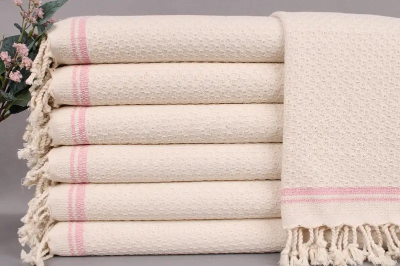 Characterized by superior absorbency, the towels are woven from organic Turkish cotton, ensuring excellent moisture absorption and durability. Each towel measures 18x38 inches or 45x95 centimeters and weighs 120 grams, with hand-weaving tolerances of ± 2 inches or 5 centimeters. Orders over 35 USD qualify for free worldwide shipping, delivered via FedEx or DHL Express within 2-5 business days.