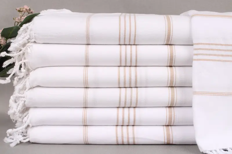 Each Turkish towel is woven from organic Turkish cotton, resulting in a product characterized by durability and superior absorbency. These towels, measuring 40x71 inches or 100x180 centimeters, weigh approximately 300 grams. The weaving process allows for a tolerance of ±2 inches or 5 centimeters in size.