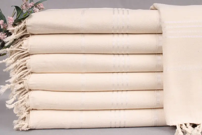 Woven from organic Turkish cotton, these towels ensure excellent absorbency and durability, resulting in a product that becomes softer with each wash. Characterized by precise dimensions of 40x71 inches (100x180 centimeters) and a weight of 280 grams, the hand-weaving process allows for a ±2" (±5cm) tolerance in size. Embroidery customization options include letters, names, or logos, with placement typically at the middle of the bottom of the towel.