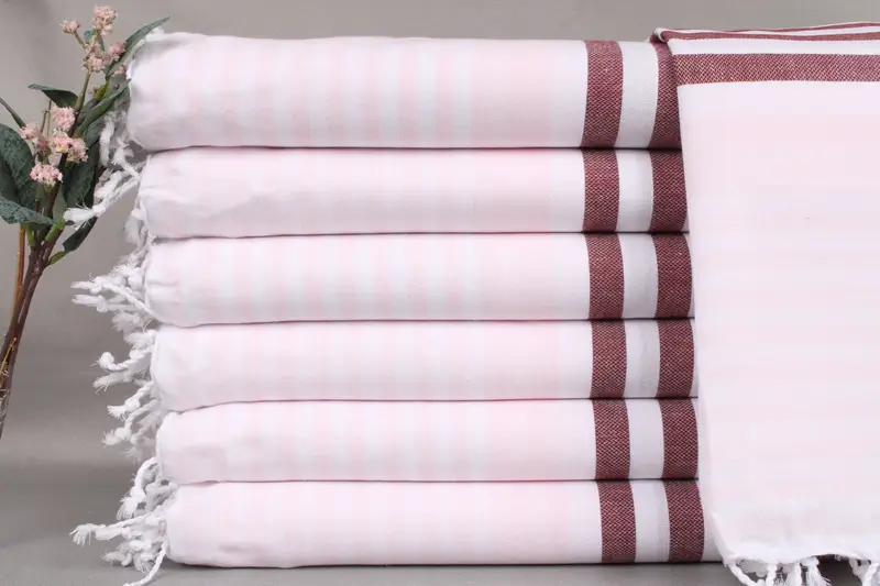 Organic Turkish cotton fibers are utilized in the towels, ensuring durability and high absorbency. Each towel is woven on looms by skilled artisans, resulting in a textured finish. The towels are 36x67 inches (90x170 centimeters) and weigh 274 grams, with a tolerance of ±2 inches (5cm) due to the hand-weaving process.
