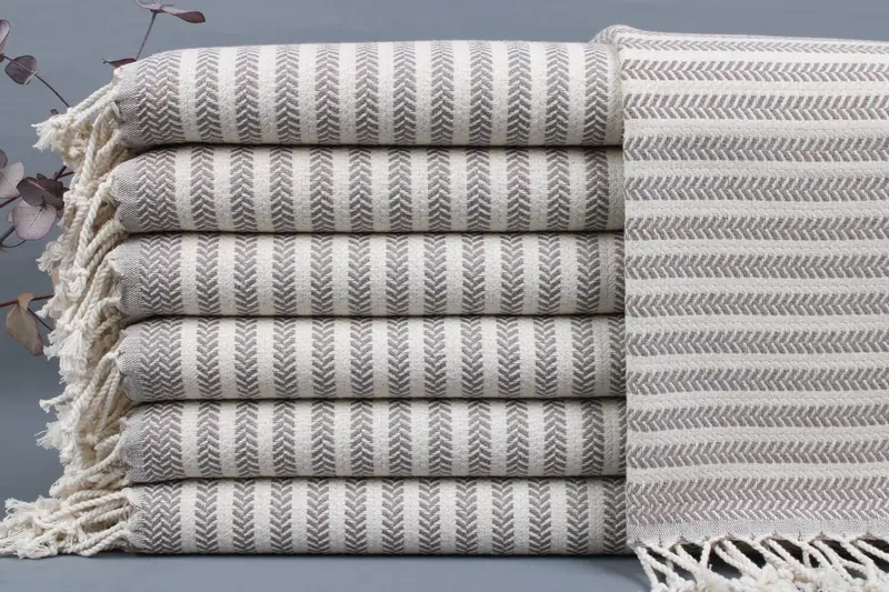 All beach towels, hand towels, and throws are woven from organic Turkish cotton on looms, ensuring superior quality. Resulting in towels measuring 18x40 inches or 45x100 centimeters and weighing 114 grams, these products feature a hand-weaving tolerance of ± 2" or 5 cm. Personalized options include embroidery or monogramming with specific fonts, colors, and placements. Each order over 35 USD offers free shipping globally with a delivery timeframe of 2-5 business days via FedEx or DHL Express. Pre-shrunk towels require washing before first use, ...
