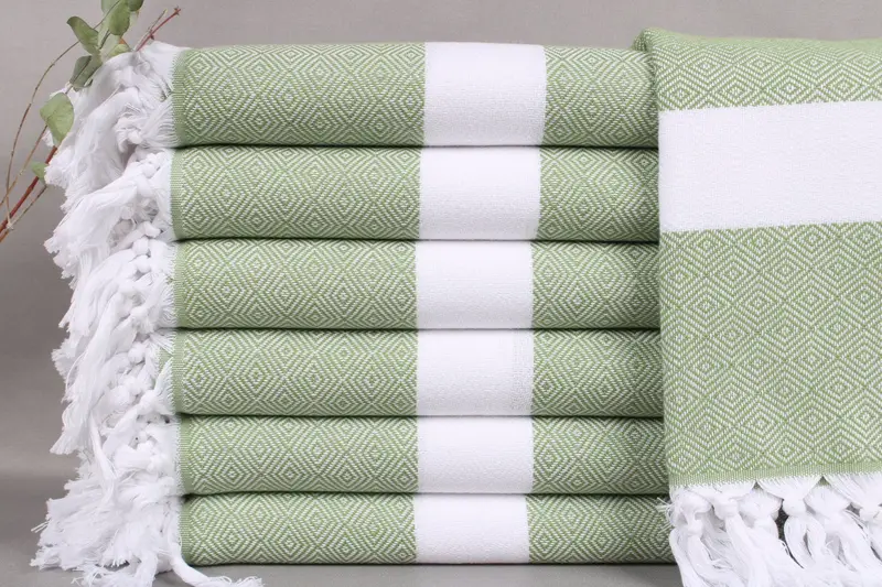 The towels are crafted from organic Turkish cotton, ensuring high quality and sustainability. Characterized by their natural fiber composition, these towels exhibit excellent absorbency, resulting in efficient moisture management. Each item is handwoven on looms, with dimensions of 40x71 inches or 100x180 centimeters, and a weight of 360 grams.