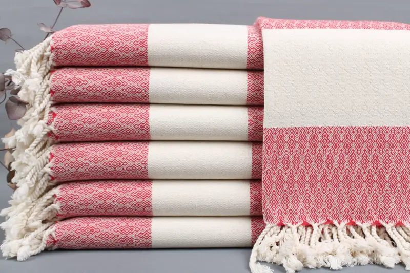 Organic Turkish cotton forms the basis of these towels, ensuring high absorbency and durability. Resulting in towels that are ideal for a variety of uses, each piece measures 40x70 inches or 100x180 centimeters. Weighing between 425 to 475 grams, the tolerances in weaving are within ± 2 inches or 5 centimeters.
