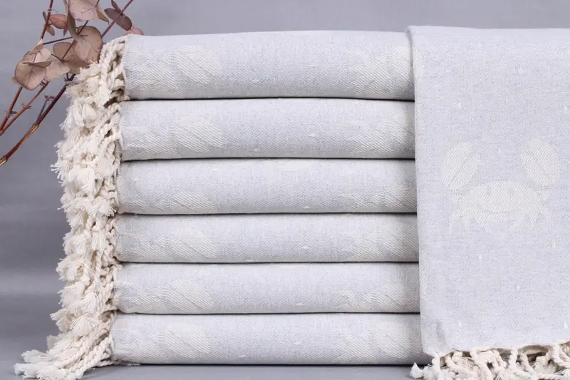 Woven from organic Turkish cotton, these beach towels exhibit superior absorbency and durability. Resulting in a soft and lightweight fabric, they are ideal for diverse applications. Each piece measures 40x67 inches or 100x170 centimeters with a weight of 420 grams, ensuring a ± 2 inches or 5 cm tolerance due to hand weaving.