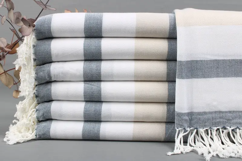 Absorbency is ensured through the use of organic Turkish cotton, a material chosen for its superior softness and durability. Resulting in an optimal balance between lightweight portability and comprehensive absorbency, the towels are manufactured with this cotton fiber. The towels exhibit dimensions of 40x70 inches or 100x180 centimeters, with a weight range of 425-475 grams. Weaving tolerances are ±2 inches or 5 centimeters, ensuring uniformity.