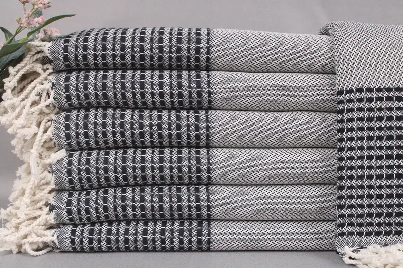 Turkish cotton products are woven from organic fibers, ensuring high quality and sustainability. Each item, such as beach towels or bedspreads, features a size of 36x69 inches or 90x175 centimeters, with a tolerance of ±2 inches or 5 centimeters due to manual weaving. Weighing 420 grams, these products exhibit a density that results in substantial absorbency.