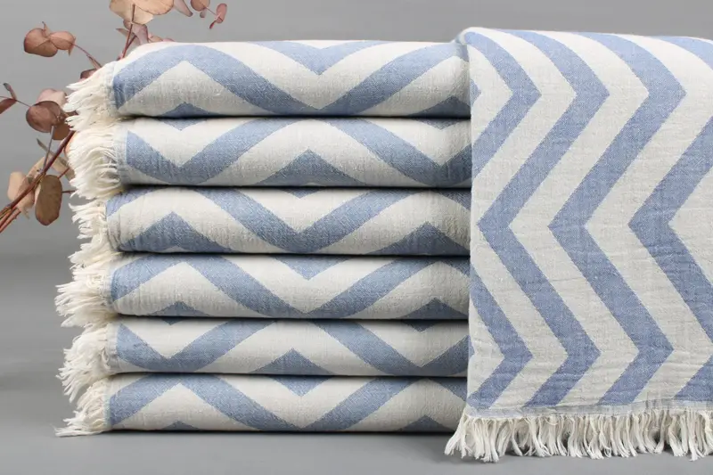 Characterized by their organic Turkish cotton composition, the towels are notable for their high absorbency and durability. Each towel is handmade, resulting in a unique product with slight variations in dimensions due to the weaving process. Dimensions stand at 40x70 inches or 100x180 centimeters, with a tolerance of ± 2 inches or 5 centimeters. The weight of these towels ranges from 425 to 475 grams, ensuring a luxurious feel.