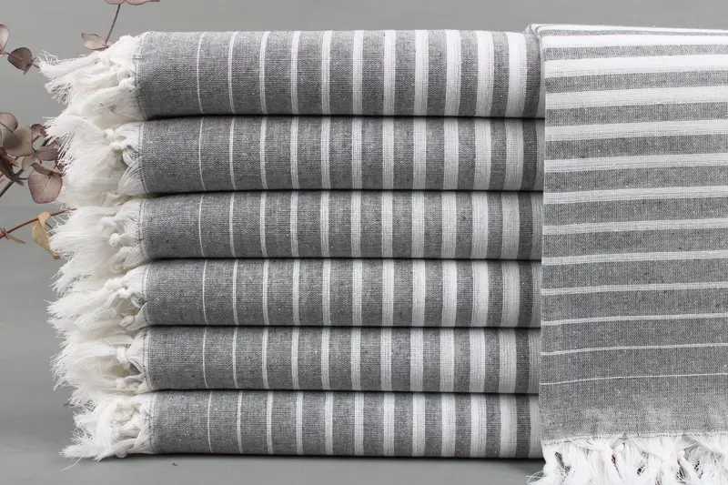 Characterized by an organic fiber composition, each item is woven from Turkish cotton, ensuring high absorbency and durability. Resulting in dimensions of 40x69 inches or 100x175 centimeters, the weight of the towels is 240 grams. Weaving tolerances of ± 2 inches or 5 centimeters are permitted.