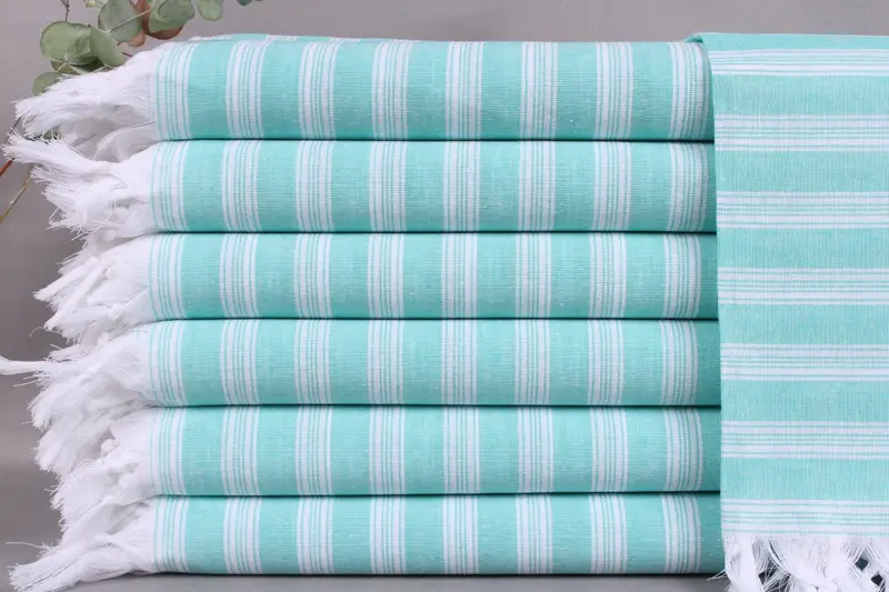 Weaved from organic Turkish cotton, the towels ensure superior absorbency and durability. Resulting in dimensions of 40x71 inches or 100x180 centimeters, the product weighs 210 grams with a hand-weaving tolerance of ±2 inches or 5 centimeters. The customization entails personalization options with embroidery or name placement, with care instructions recommending separate washing initially.