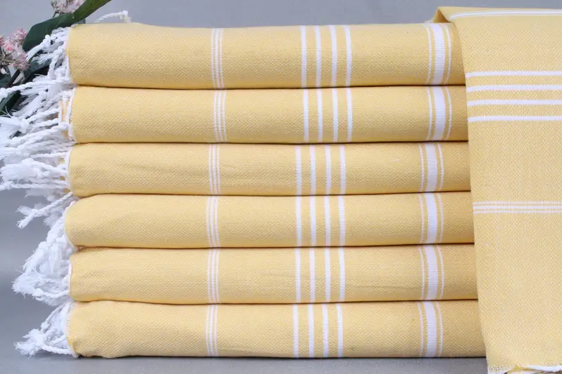 The product is woven from organic Turkish cotton, resulting in a high-quality, soft, and absorbent towel. Each towel is handmade using traditional looms, ensuring a unique and durable piece. Characterized by a size of 71x40 inches or 180x100 centimeters, with a tolerance of ±2 inches or 5 centimeters due to hand-weaving techniques, these towels weigh approximately 265 grams.