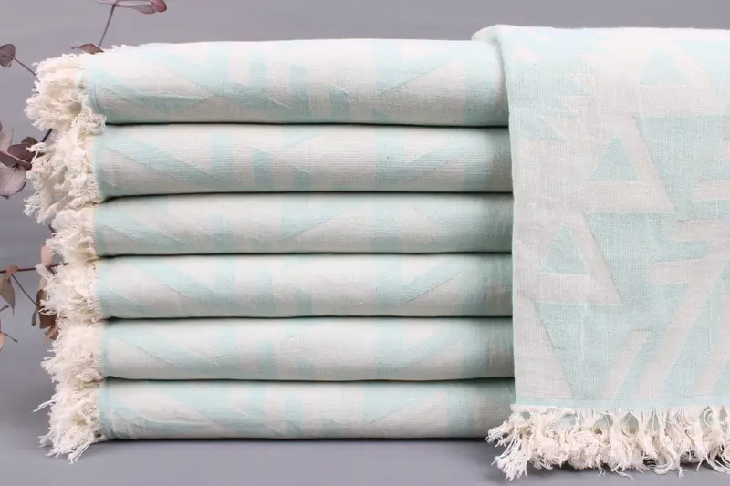 Turkish towels and throws are characterized by specific dimensions of 40x70 inches or 100x180 centimeters, with each product handwoven, resulting in potent...