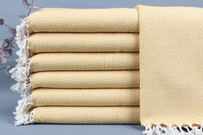 Turkish towels, renowned for their quality and style, are woven from organic Turkish cotton, ensuring high absorbency and durability. Characterized by meticulous hand-weaving, these towels measure 18x36 inches or 45x90 centimeters, weighing 90 grams with a tolerance of ± 2 inches or 5 centimeters. Each item, whether a beach towel, blanket, or hand towel, can be personalized with embroidered letters, names, or logos according to customer specifications.