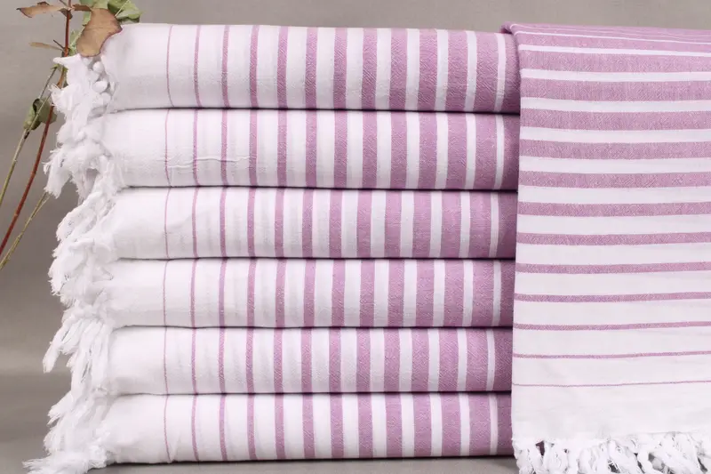 Characterized by a dense fiber composition of organic Turkish cotton, these towels ensure maximum absorbency and comfort. Each towel, measuring 36x71 inches or 90x180 centimeters, weighs 200 grams and is handcrafted on looms, with a tolerance of ±2 inches or 5 cm in dimensions. Resulting in a luxurious hand-weaving that provides exceptional quality.