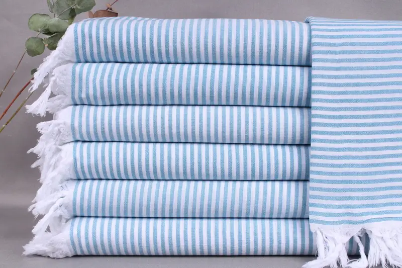 Handwoven Turkish towels, ensuring durability and high absorbency, are crafted from organic Turkish cotton. Resulting in dimensions of 40x63 inches or 100x160 centimeters, these towels weigh 200 grams each, with a weaving tolerance of ±2 inches or 5 centimeters.