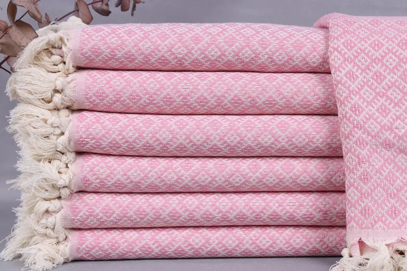 Organic Turkish cotton, derived from the natural fibers, ensures superior absorbency. Resulting in towels that are both soft and durable after washing. Turkish towels, characterized by their hand-weaving process, have dimensions of 40x71 inches or 100x180 centimeters, with a weight of 450 grams. The weaving tolerance is ± 2 inches or 5 centimeters.