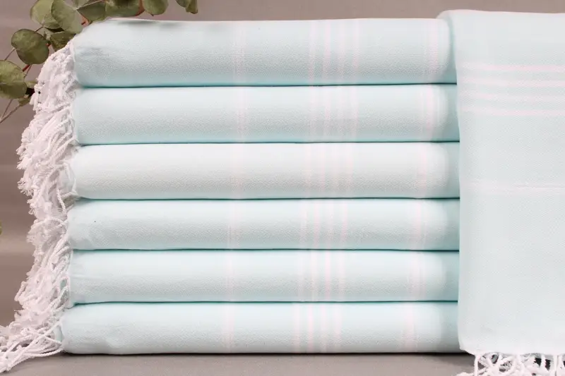 Woven from organic Turkish cotton, the beach towel is characterized by its high absorbency, ensuring efficient moisture management. Measuring 40x71 inches or 100x180 centimeters, each piece weighs 290 grams with a permissible tolerance of ±2 inches or 5 centimeters. Hand weaving enhances its quality and texture.