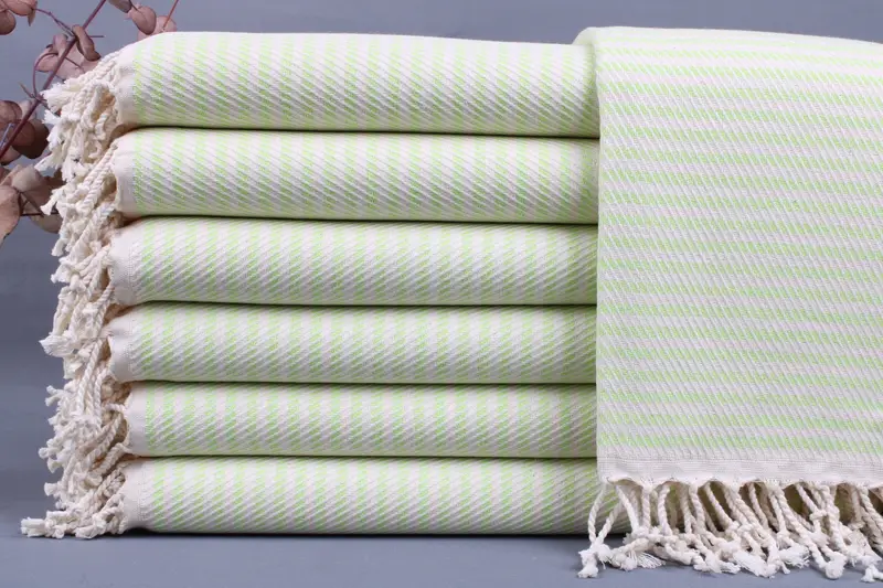 The towels, blankets, and throws offered are meticulously woven from organic Turkish cotton, ensuring superior absorbency and durability. Measuring approximately 40x70 inches or 100x180 centimeters, each piece is hand-woven with a tolerance of ±2 inches or 5 centimeters. Weighing between 425 and 475 grams, these items provide a luxurious yet robust feel.