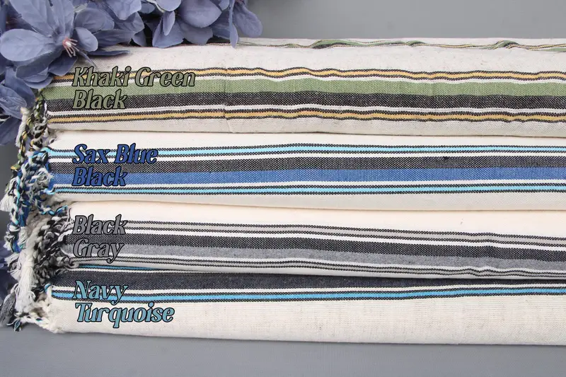 The 20"x36" cotton hand towel is characterized by its multi-material construction of organic and recycled cotton, ensuring a sustainable product while maintaining superior absorbency. The towel exhibits a weight of 86 grams, with dimensions of 36x20 inches (50x90 cm) and a tolerance of ± 2" or ± 5 cm due to the hand-weaving process. Embroidery customization is available, featuring personalized letters, names, or logos in specified fonts and colors. Pre-shrunk and ready for immediate use, the towel offers extensive versatility across various set...