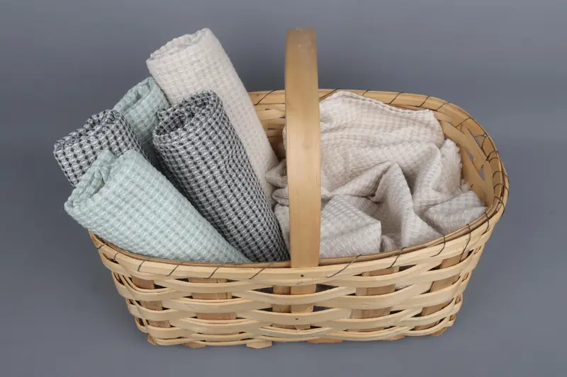 These 16"x24" cotton dish towels, set of 3, are characterized by their versatile material composition, offering a blend of organic and recycled cotton fibers, ensuring eco-friendly sustainability. Each towel, weighing approximately 400 grams, is meticulously handwoven from Turkish cotton using traditional looms, resulting in dimensions of 24x16 inches or 40x60 centimeters with a tolerance of ± 2" or 5cm. The towels can be personalized with monograms, names, or logos, allowing customization in various font styles and colors, which can be specifi...