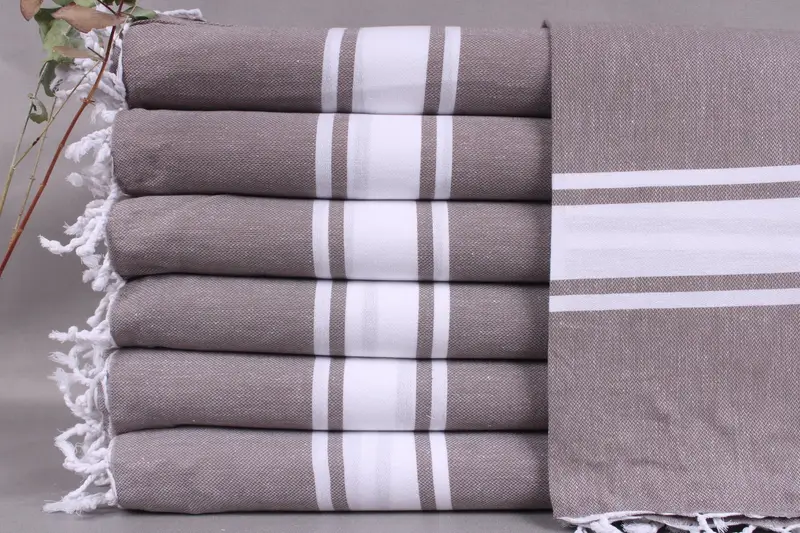Organic Turkish cotton characterizes the construction of the beach towels. Ensuring high absorbency and durability, these towels maintain a 290 grams weight, resulting in a versatile fabric suitable for multiple applications. Each towel is meticulously hand-woven within a tolerance of ± 2", or 5 centimeters, to a standard dimension of 40x71 inches or 100x180 centimeters.