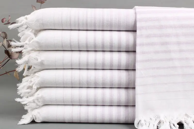 Comprising organic Turkish cotton, the beach towels exemplify superior absorbency and durability. Resulting in gentle textures, the towels require washing prior to initial usage for optimal softness. Each piece measures 40x69 inches or 100x175 centimeters, with a weight of 240 grams, providing a ± 2-inch (5 cm) tolerance due to manual weaving.
