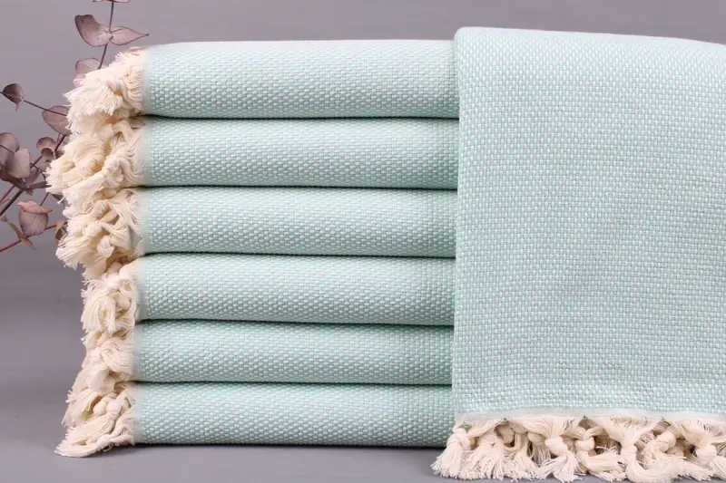 Characterized by their luxurious organic Turkish cotton composition, these towels ensure high absorbency and durability. Resulting in superior quality, the towels are woven on traditional looms, creating a unique hand-crafted texture. Measuring 40x71 inches (100x180 cm) with a tolerance of ±2", they provide ample coverage and versatility for various uses.