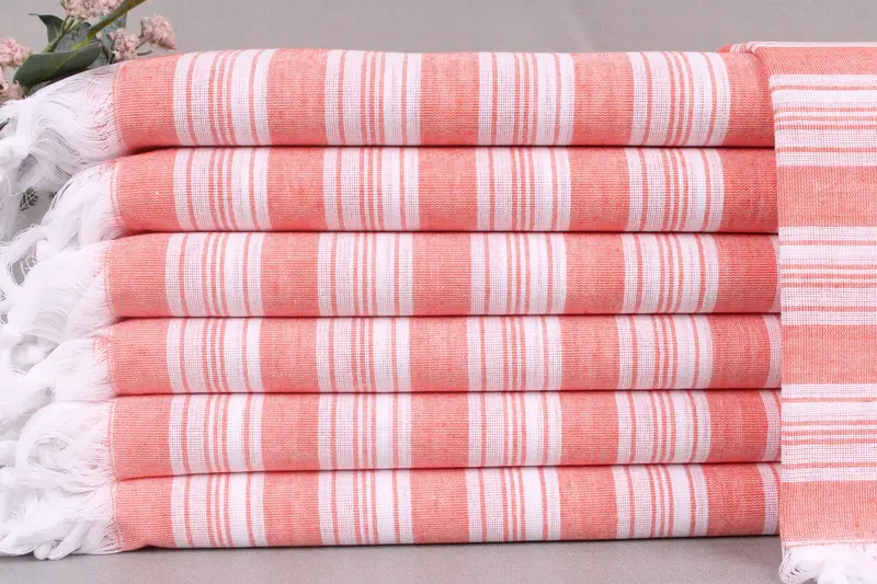 Each Turkish towel is meticulously woven from organic Turkish cotton, ensuring high absorbency and softness. Resulting in a lightweight yet durable product, the towels maintain their structural integrity despite regular washing. Characterized by precise dimensions of 40x71 inches (100x180 centimeters) with a tolerance of ± 2 inches or 5 centimeters, these towels weigh approximately 124 grams.