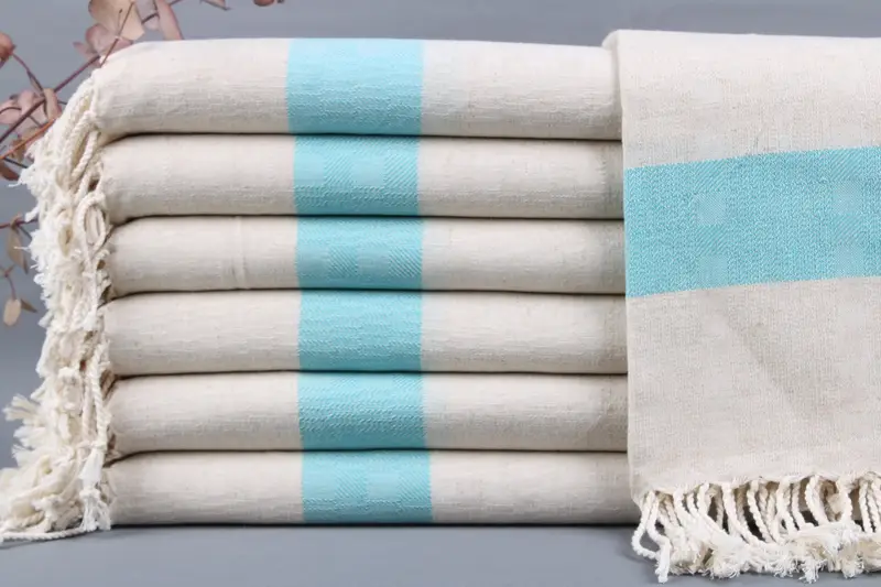 Turkish towels, characterized by their organic Turkish cotton composition, exhibit superior absorbency and durability. These beach towels, beach blankets, and throws are woven from high-quality fibers, ensuring long-lasting use and comfort. Resulting in a natural sheen and soft texture, each piece is hand-woven on looms, providing an artisanal touch.