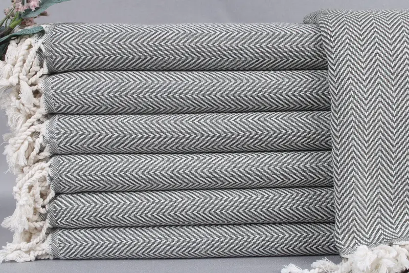 Each towel is woven from organic Turkish cotton on looms, ensuring a high-quality, soft material characterized by excellent absorbency. Resulting in towels that become softer with each wash, it is advised to wash them separately for the first two washes. Each towel measures 40x71 inches or 100x180 centimeters and weighs approximately 400 grams. Tolerance in size may vary by ± 2 inches or 5 centimeters due to hand-weaving.