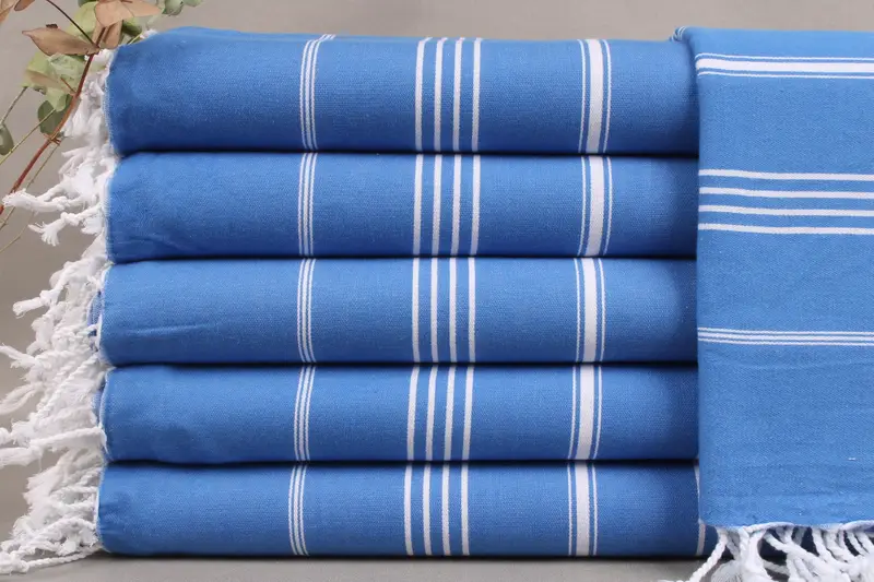 All beach towels, hand towels, and throws are crafted from organic Turkish cotton, ensuring superior absorbency and comfort. Resulting in the towels' size of 38x73 inches (95x185 cm), weighing 280 grams, with a hand-weaving tolerance of ±2" (±5 cm). Embroidery customization is available for personalization with precise placement instructions provided. Towels require pre-washing for optimal softness and should be washed separately initially.