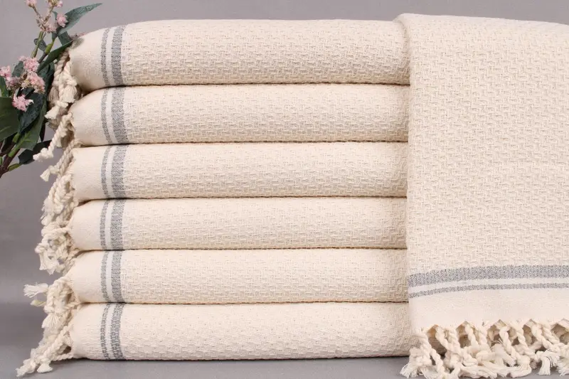 Each Turkish towel features hand-woven craftsmanship, enabling customization options with embroidery or personalization. The pre-washed state enhances initial softness and usability. Orders over 35 USD qualify for free worldwide shipping.