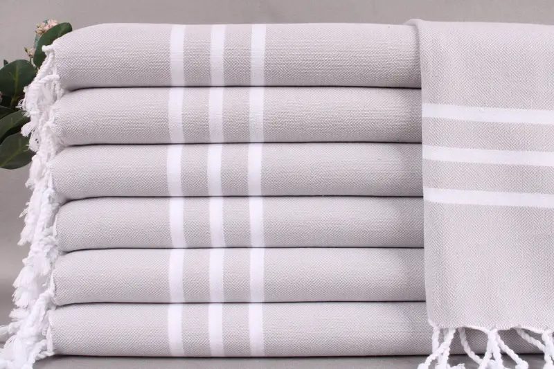 Characterized by the use of organic Turkish cotton, the towels ensure high durability and absorbency. Each piece adheres to specified dimensions of 18x40 inches or 45x100 centimeters, with a weight of 100 grams. Tolerance in size may range from ±2 inches or 5 centimeters due to hand weaving processes.