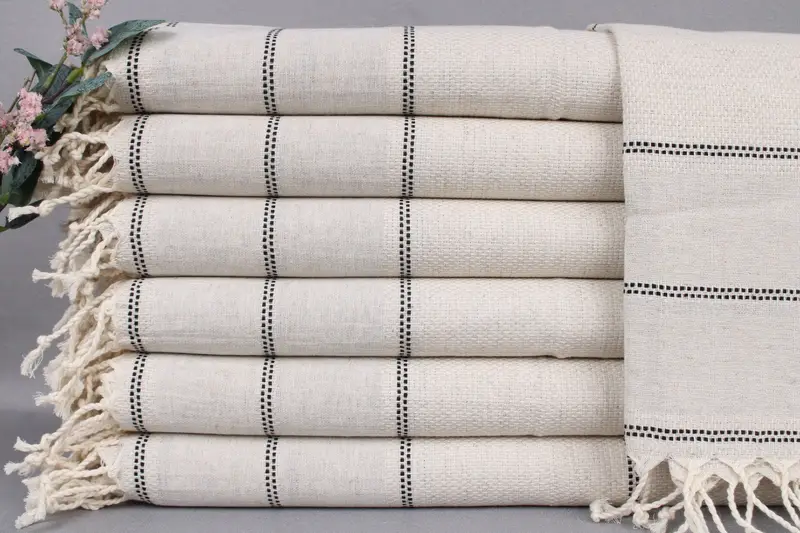Organic Turkish cotton characterizes these monogrammed hand towels, ensuring superior absorbency and breathability. Each towel, measuring 20x40 inches or 50x100 centimeters, weighs 120 grams with a hand-weaving tolerance of ± 2 inches or 5 centimeters. Resulting in potential size variations, they are meticulously woven on looms and can be personalized with embroidery or monograms.