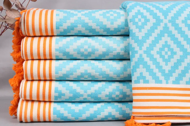 Turkish Peshtemals are characterized by their use of 100% organic Turkish cotton, ensuring high absorbency and durability. Resulting in a lightweight yet robust textile, these towels measure 40x71 inches or 100x180 centimeters with a weight of 950 grams. The size tolerances are ± 2 inches or 5 centimeters due to hand-weaving.