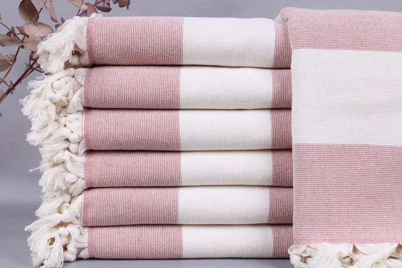 Crafted from organic Turkish cotton, these towels ensure high absorbency and durability. Characterized by their handmade nature, the towels measure 36x71 inches or 90x180 centimeters with a weight of 400 grams. The tolerance in size is ± 2 inches or 5 centimeters, resulting from the hand-weaving process.