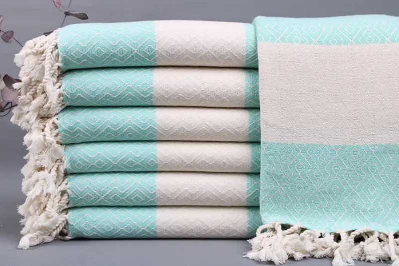 Comprised entirely of organic Turkish cotton, the towels exhibit exceptional absorbency ensuring a plush and soft texture. Resulting in dimensions of 38x67 inches or 95x170 centimeters, the weight ranges between 325-375 grams. Weaving tolerances permit size variations of up to ± 2 inches or 5 centimeters.