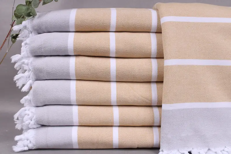 Each beach towel, Turkish towel, and blanket is woven from organic Turkish cotton, ensuring superior absorbency and durability. Characterized by dimensions of 36x67 inches (90x170 cm) and a weight of 400 grams, these products allow for a tolerance of ±2 inches or 5 cm due to hand-weaving techniques. Embroidery customization is available with specific details regarding letters, logos, font, and placement, enhancing personalization for various uses.
