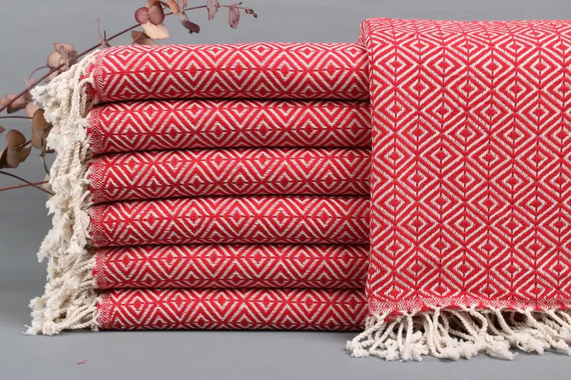 Characterized by hand-woven organic Turkish cotton, the towels are designed for enhanced absorbency and durability. Each towel, blanket, or hand towel is crafted with a commitment to quality, resulting in products that are both soft and long-lasting. Dimensions for the towels are 40x70 inches or 100x180 centimeters, with a permissible deviation of ±2 inches or 5 centimeters due to manual weaving processes.