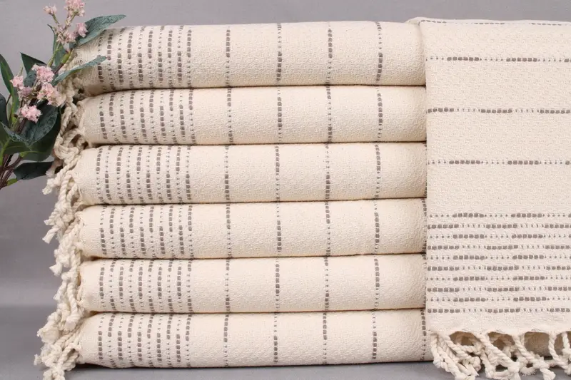 Weaving techniques ensure each Turkish towel is crafted from organic Turkish cotton, guaranteeing a superior absorbency. Resulting in towels with dimensions of 18x36 inches or 45x90 centimeters and a weight of 140 grams, tolerance in size is ± 2" or 5 centimeters. These towels can be personalized with embroidery or monograms, specifying details such as letters, logos, font, and color placement.