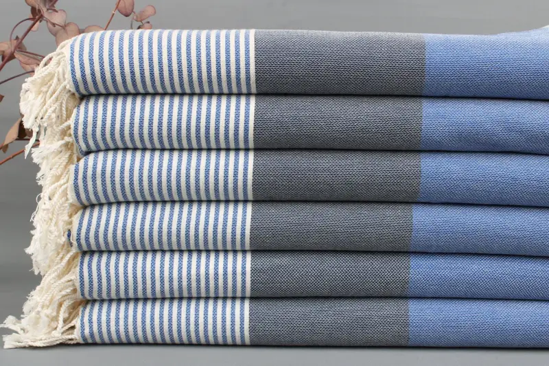 Organic Turkish cotton characterizes the woven textiles, resulting in high absorbency. Each product, including beach towels and blankets, is handwoven to precise specifications: 40x70 inches or 100x180 centimeters with a tolerance of ±2 inches or 5 centimeters. Product weight ranges from 425 to 475 grams.