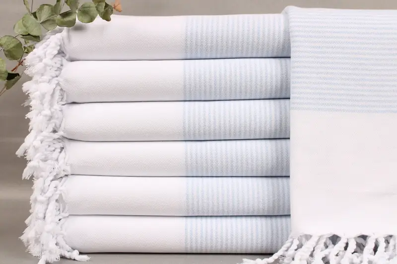All the towels and bedspreads are woven from organic Turkish cotton, ensuring superior absorbency and durability. Characterized by a size of 36x71 inches or 90x180 centimeters, these items weigh approximately 400 grams. The weaving process introduces a tolerance of ±2 inches or 5 centimeters.