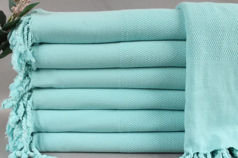 All my beach towels, small towels, and throws are woven from organic Turkish cotton, ensuring superior absorbency and durability. Characterized by dimensions of 32x71 inches or 80x180 centimeters, with a weight of 320 grams, these products exhibit a weaving tolerance of ±2 inches or 5cm. Hand-weaving results in slight variations in measurements, enhancing their artisanal quality.